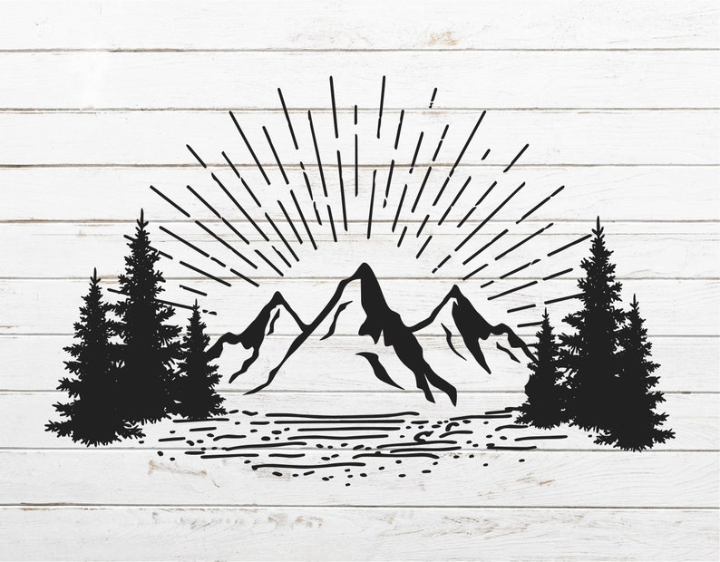Mountains and Sunray Svg, Mountains And Trees Svg